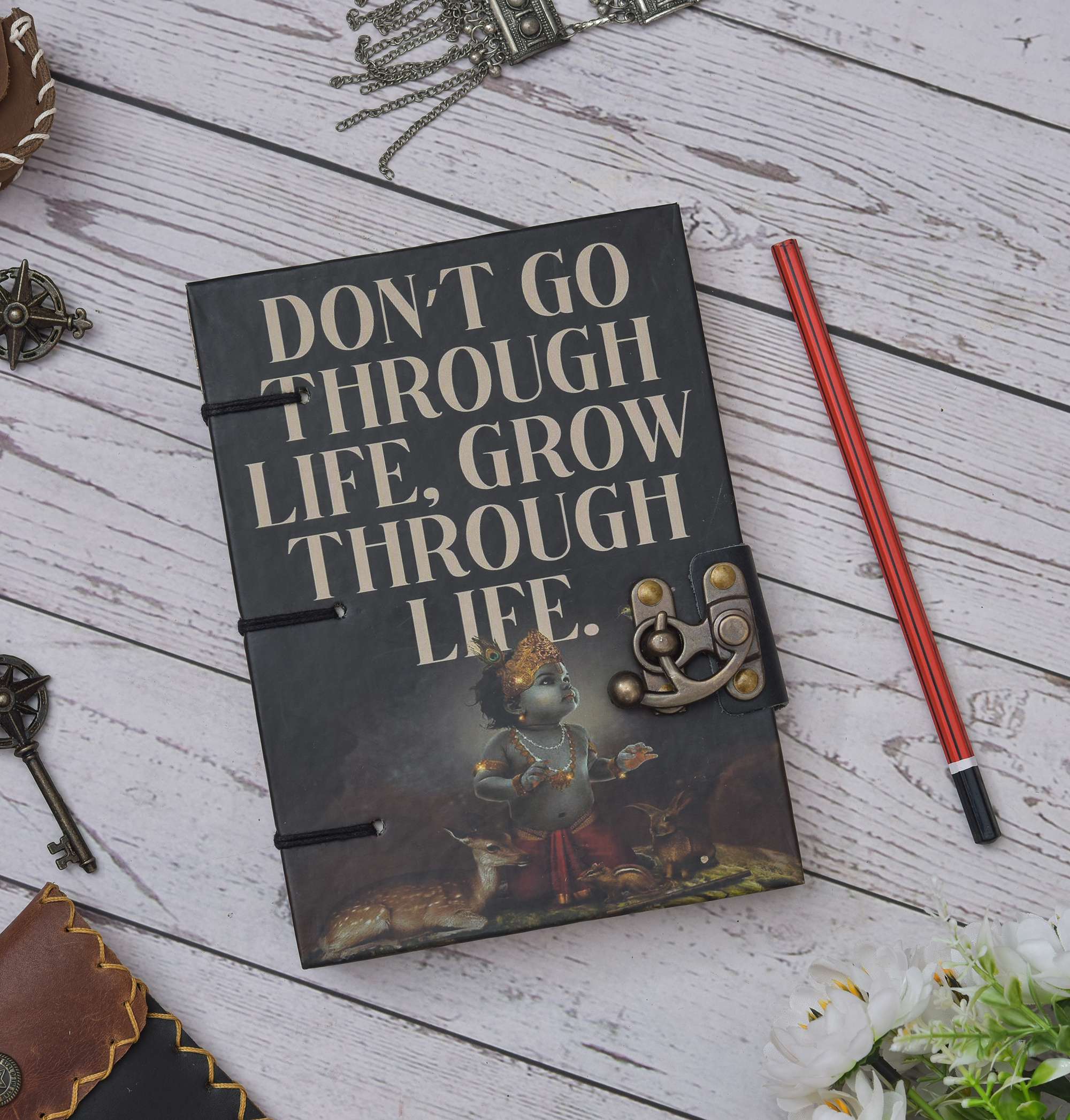vintage handmade leather journal. Crafted with genuine leather, it radiates authenticity and charm, perfect for those who appreciate classic craftsmanship. The premium antique lock closure adds a touch of elegance and security, ensuring your thoughts and memories are safeguarded within its pages. Inside, you’ll discover 200 brown handmade pages, providing ample space for your musings, sketches, and stories to unfold. Whether it’s for journaling, sketching, or planning, this versatile journal is a timeless companion for your creative endeavors. Treat yourself or a loved one to this exquisite piece, a celebration of tradition and creativity